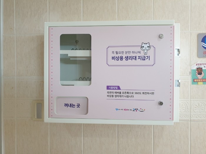 [부자동네타임즈 김인수기자] 고양시는 여성 친화도시 조성의 일환으로 공원·도서관 등 공공기관 화장실에 비상용 생리대 무료 지급기를 12개소로 확대 운영한다.