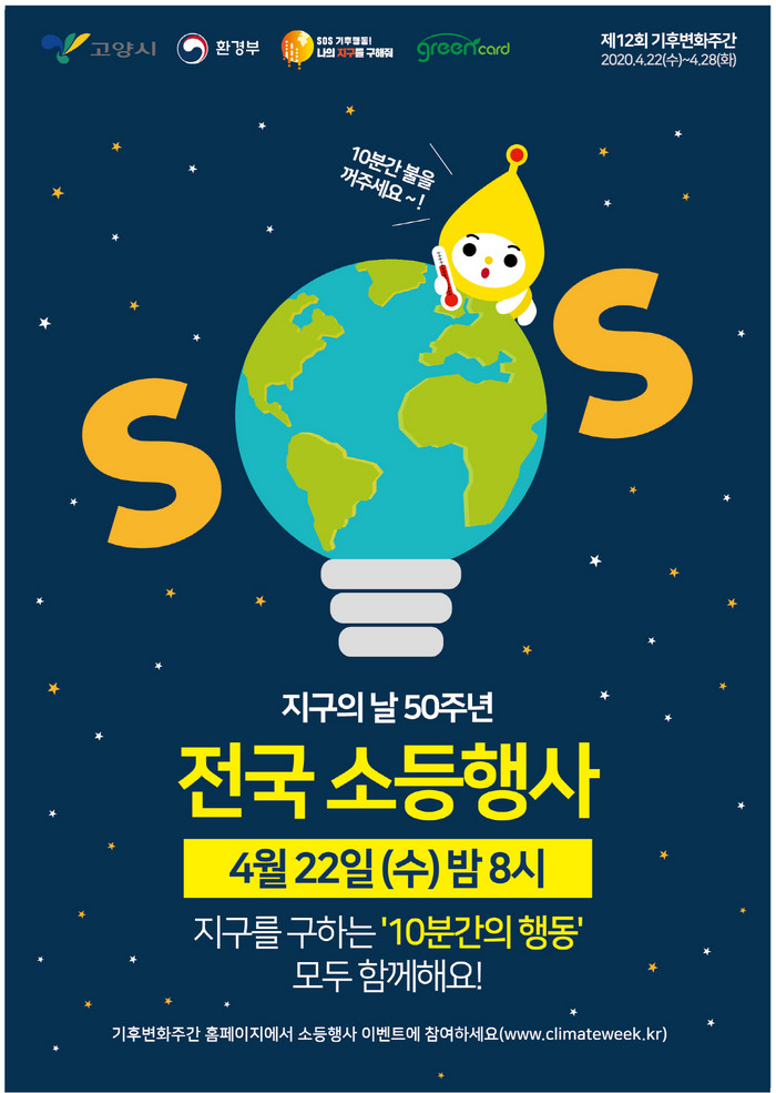 [부자동네타임즈 김인수기자] 고양시(시장 이재준)는 50주년 지구의 날인 22일(수) 저녁 8시부터 10분간 소등행사를 실시한다고 밝혔다.