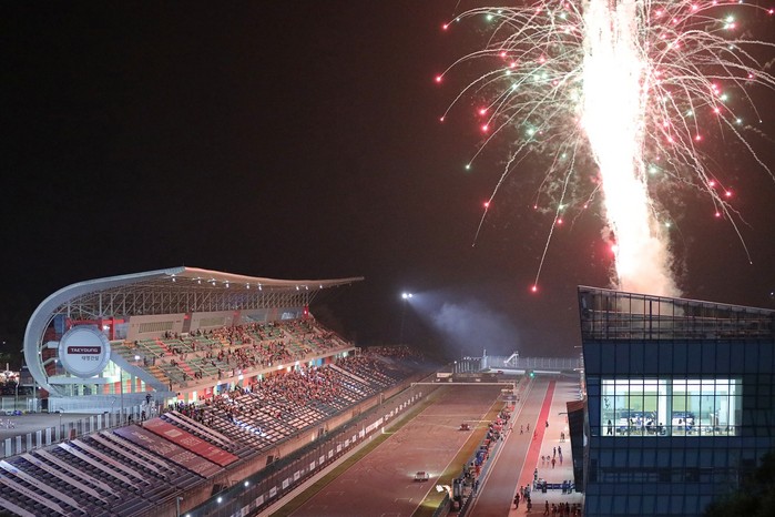 [사진설명] 지난 2019년 인제스피디움에서 열렸던 나이트 레이스 당시 슈퍼 6000 클래스 결승전 종료와 함께 불꽃놀이가 시작되고 있다.
