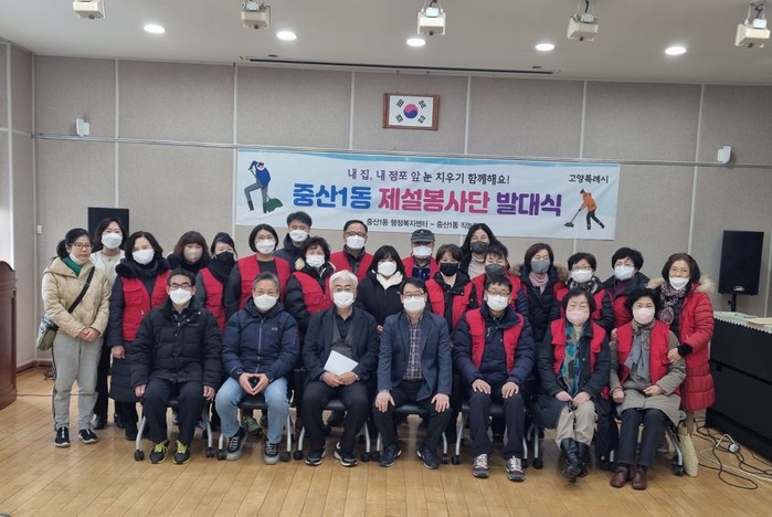 [부자동네타임즈 김인수기자] 고양특례시 중산1동 행정복지센터는 13일 “내 집, 내 점포 앞 눈 치우기 함께해요!”라는 구호를 외치며 제설 봉사단 발대식을 개최했다.