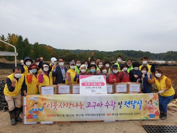 [부자동네타임즈 김인수기자] 고양시의회 행신동 지역 시의원들은 지난 10월 16일 덕양구 화정동에 있는 배다골테마파크 고구마 체험장에서 행신동 지역사회보장협의체 회원들과 함께 고구마를 수확하여 저소득층 가구에 전달하는 시간을 가졌다.