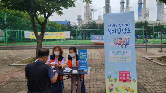 이번 행사는 복지상담의 문턱을 낮추기 위해 주민의 왕래가 많은 백석 공원을 찾아가 복지서비스 제공을 위한 상담을 실시했고, 일자리센터 일자리상담사와 동행하여 복지와 일자리 상담을 연계하여 진행했다.