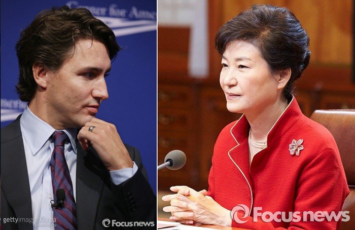 | △ 박근혜 대통령(오른쪽)와 저스틴 트뤼도 캐나다 총리. <사진제공=포커스뉴스> |