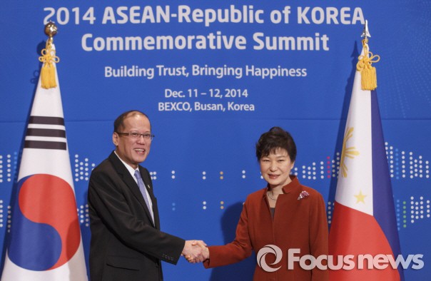 | △ 박근혜 대통령은 18일 베니그노 아키노 3세 필리핀 대통령과 정상회담을 가졌다. 사진은 2014년 말 부산 해운대구 한 호텔에서 열린 한-필리핀 정상회담 기념촬영 장면이다. 2014.12.11. <사진출처=청와대> |