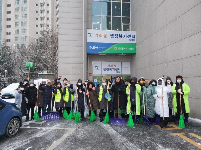 이날 제설작업에는 고양시 재난안전대책본부의 협조 요청에 따라 가좌동 제설봉사단(통장협의회 및 주민자치회, 시민안전지킴이, 지역사회보장협의체, 청소년지도협의회, 적십자봉사회, 방위협의회, 체육회 등 직능단체로 구성)과 직원들이 참여했다.