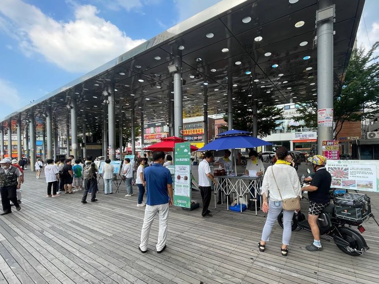 | ▲지난 31일 부천 북부역 광장에서 깨끗한 ‘물’ 캠페인을 진행한 가운데 시민들이 각 부스에 참여하고 있다. [사진 제공 = 신천지자원봉사단 부천지부] |