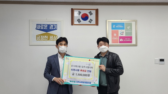 기탁된 후원금은 경기사회복지공동모금회의 백석1동 지역사회보장협의체 기금으로 모아져 관내 취약계층에게 필요한 사업에 사용할 예정이다.