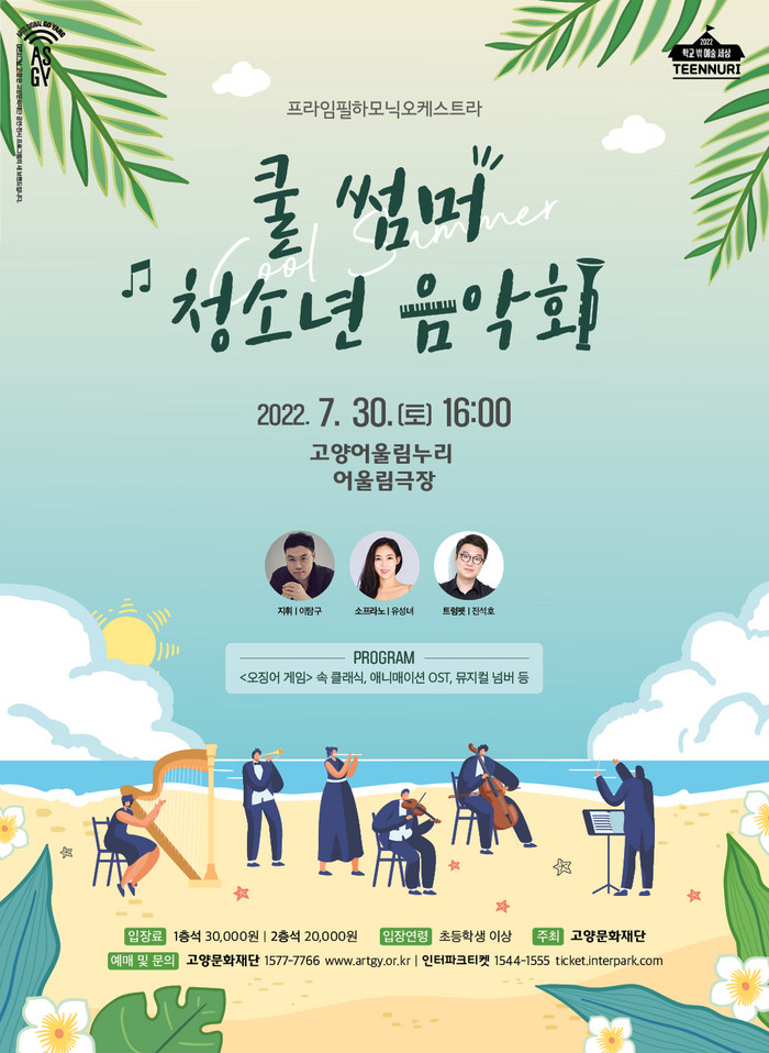 [부자동네타임즈 김인수기자] 고양문화재단(대표 정재왈)은 여름방학을 맞은 청소년들을 위해 가족과 함께 즐길 수 있는 <쿨 썸머 청소년 음악회>를 오는 7월 30일(토) 고양어울림누리 어울림극장에서 선보인다.