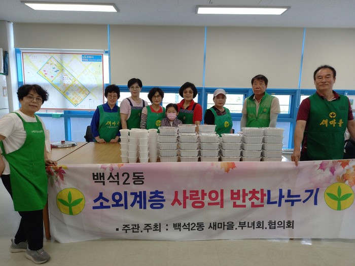 황영순 백석2동 새마을부녀회장은 “주변에 어려움을 겪는 어려운 이웃에게 작은 도움을 줄 수 있어서 보람을 느낀다. 앞으로도 정성을 다해 만든 반찬 나눔으로 사랑을 전달하겠다”고 전했다.