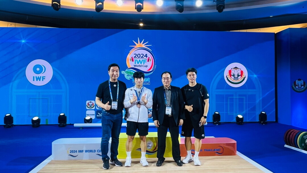 [사진설명] 2024 IWF월드컵역도대회 동메달을 목에 건 박주효 선수.
