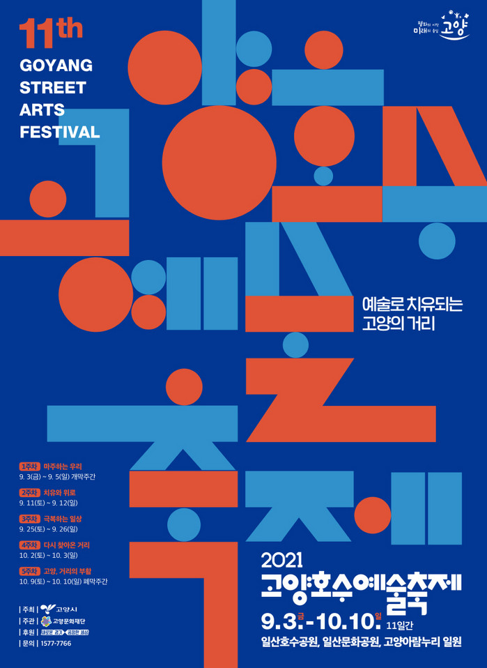 [부자동네타임즈 김인수기자] 고양시와 고양문화재단(이사장 이재준)은 고양시의 대표적인 가을시즌 축제인 2021 고양호수예술축제의 전반부 프로그램을 취소하기로 결정했다. 이는 최근 정부의 코로나19 감염확산 방지를 위한 사회적 거리두기 4단계가 지속적으로 연장되어 당분간 정상적인 야외축제 진행이 어렵다는 판단에 따른 것이다. 현재 정부의 사회적 거리두기 4단계 정책은 8월 30일부터 9월 5일까지 2주간 연장되었고, 취소 대상은 축제 전반부인 1주차 (9월3일~5일)와 2주차 (9월11일~12일) 프로그램이다.