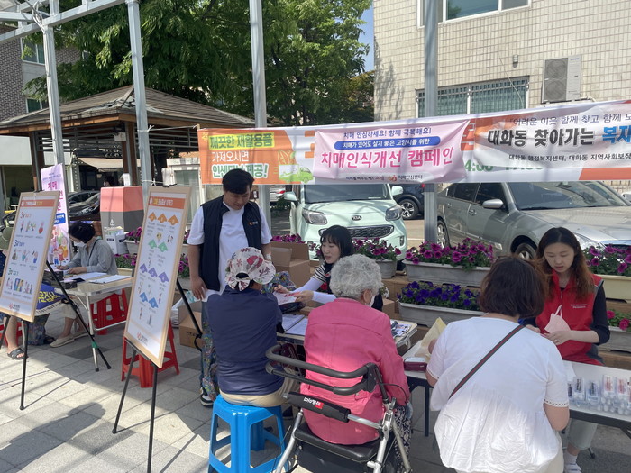 이날 캠페인은 대화동 행정복지센터의‘찾아가는 복지상담소’와 함께 진행되었으며 지역 주민을 대상으로 치매인식개선과 함께 보건.복지 등 통합 상담을 진행했다.