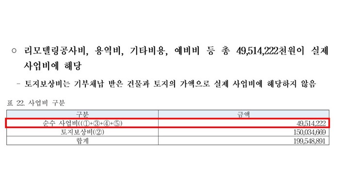따라서 기부채납이 완료되어 시 소유 재산이 완료됐음에도 관련 지침에 따라 백석 업무빌딩의 토지와 건물가액을 포함시키다 보니 실제 비용인 495억원외에 토지 및 건물가액 1,500억원을 추가로 기입하여 작성하게 된 것이었다.