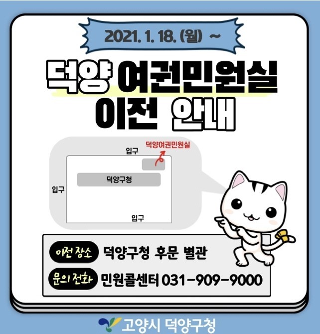 고양시 민원여권과 관계자는 “덕양 여권민원실 신축 이전으로 시민들의 여권민원 불편사항이 많이 해소되리라 기대된다”며, “덕양 여권민원실이 고양시를 대표하는 ‘열린 민원실’로 누구나 부담 없이 찾고 편안히 머물 수 있는 시민 중심 공간이 될 수 있도록 더욱 노력할 것이다”고 밝혔다.