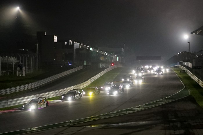 [사진설명] 나이트레이스, 유관중으로 열린 2021 CJ대한통운 슈퍼레이스 챔피언십 2라운드에서 슈퍼 6000 클래스 머신들이 결승 레이스를 시작하고 있다.