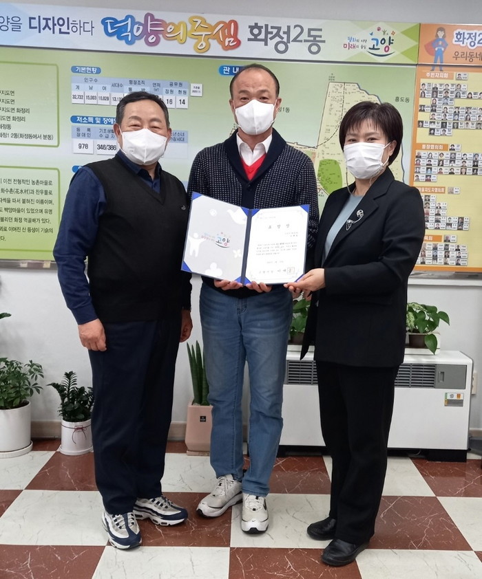 [부자동네타임즈 김인수기자] 고양시 덕양구 화정2동 행정복지센터(동장 김현정)는 2월 10일 동 행정복지센터 동장실에서 화정동 소재 음식점 ‘대가순두부’ 오재일 사장에게 선행시민 표창장을 전달했다.