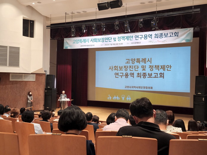 [부자동네타임즈 김인수기자] 고양특례시(시장 이동환) 및 고양시지역사회보장협의체가 지난 19일 고양시 문예회관에서 ‘사회보장 진단 및 정책제안 연구용역 최종보고회’를 개최했다.