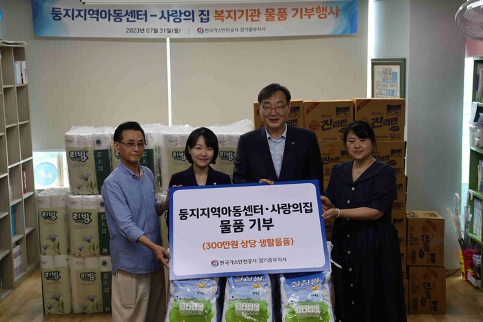 먼저, 가스안전공사가 일산전통시장·서문상점가에서 구매한 생필품을 일산 내 두 곳의 복지시설에 전달했다. 한 곳은 방과 후 취약계층 학생들을 돌보는 둥지지역아동센터, 다른 한 곳은 중증 지체장애인들이 생활하는 사랑의집이다. 이 날 전달한 생필품은 모두 일산전통시장과 서문상점가에서 구매한 것으로, 취약계층 돌봄 시설 지원과 전통시장 활성화에 동시에 기여하기 위한 취지다.