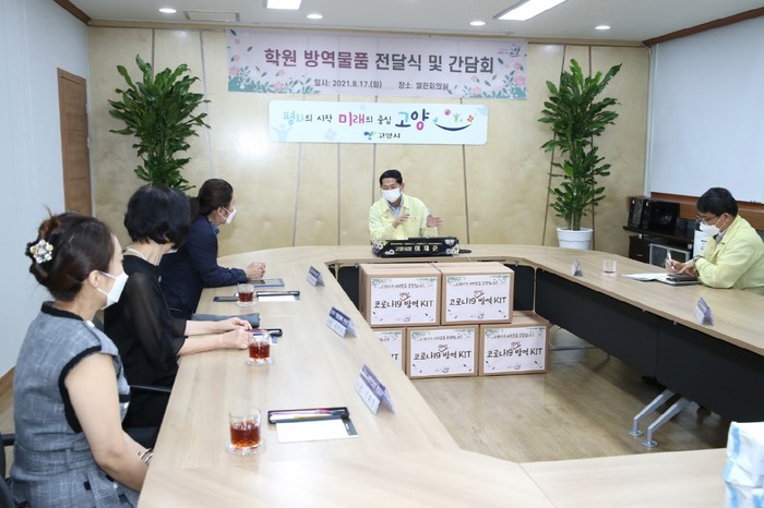 [부자동네타임즈 김인수기자] 고양시가 학원에 방역물품을 지원하기 위해 학원 연합회와 간담회를 개최한 후 지난 23일부터 학원에 방역 물품을 배송한다.