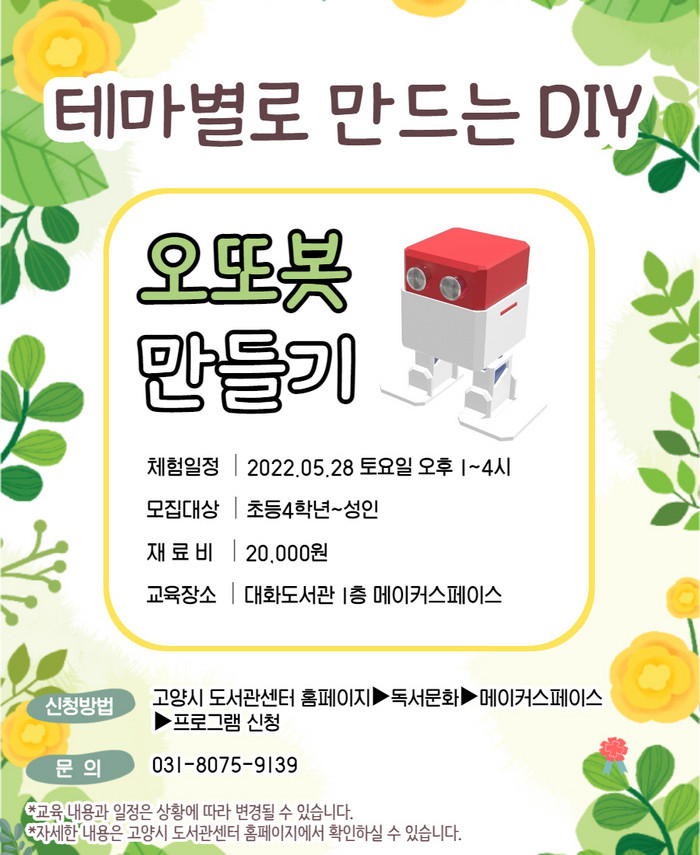 [부자동네타임즈 김인수기자] 고양시 대화도서관이 4월 26일부터 ‘메이커스페이스 5월 교육 프로그램’ 수강생을 모집한다.