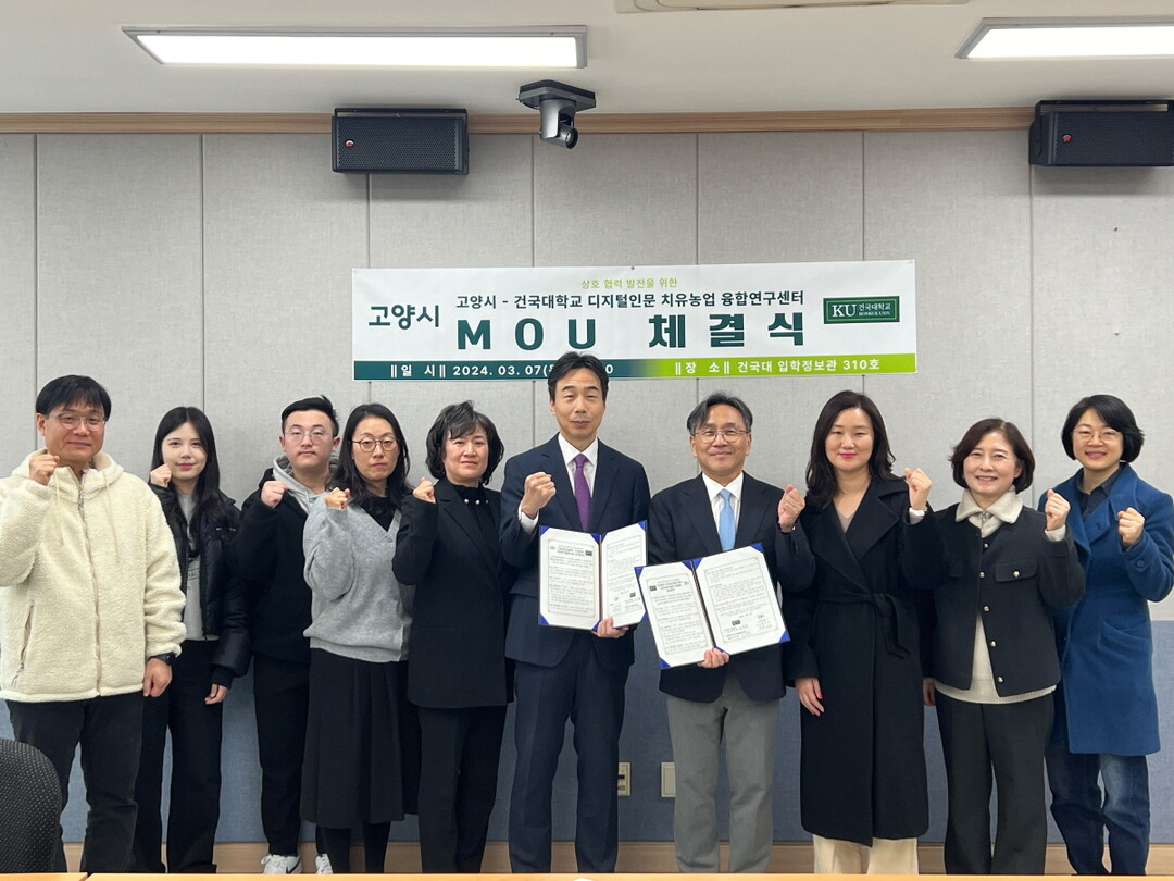 [부자동네타임즈 = 김인수 기자] 고양시농업기술센터(소장 권지선)는 건국대학교 산학협력단(단장 윤동열)과 지난 7일 건국대학교 입학정보관에서 치유농업 분야 공동연구 및 정보교류를 위한 업무협약을 체결했다.