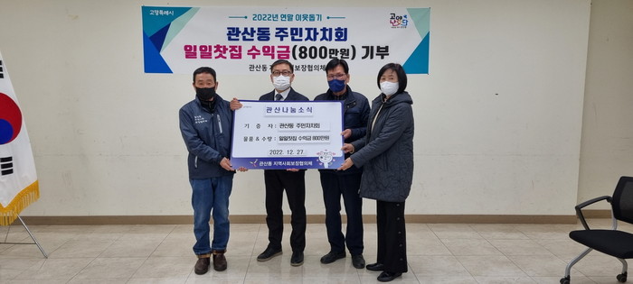 [부자동네타임즈 김인수기자] 고양특례시 관산동 주민자치회는 지난 27일, 관내 어려운 이웃들을 위해 일일찻집 수익금 800만 원을 기부해 연말연시를 훈훈하게 만들었다.