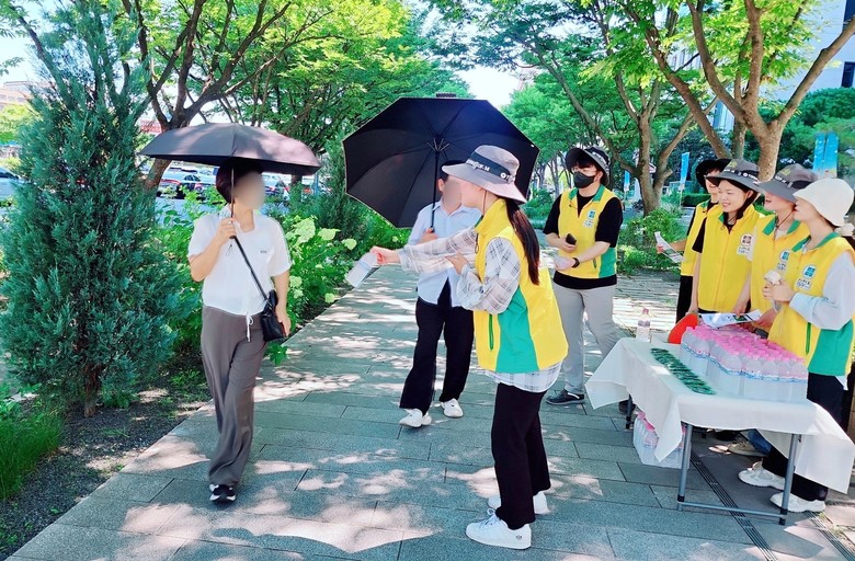 지난해 8월 신천지자원봉사단 전북지역연합회가 도내 곳곳에서 폭염에 지친 시민을 위한 얼음생수 나눔을 하고 있다.