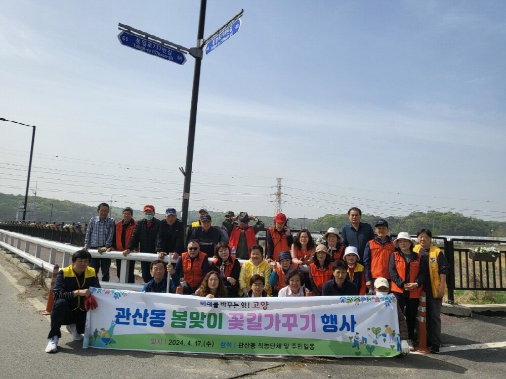 [부자동네타임즈 = 김인수 기자] 고양특례시 덕양구 관산동이 지난 17일 고양국제꽃박람회의 성공적 개최를 응원하고 마을 환경을 정비하기 위해 관산동 일대에 초화를 식재했다고 밝혔다.