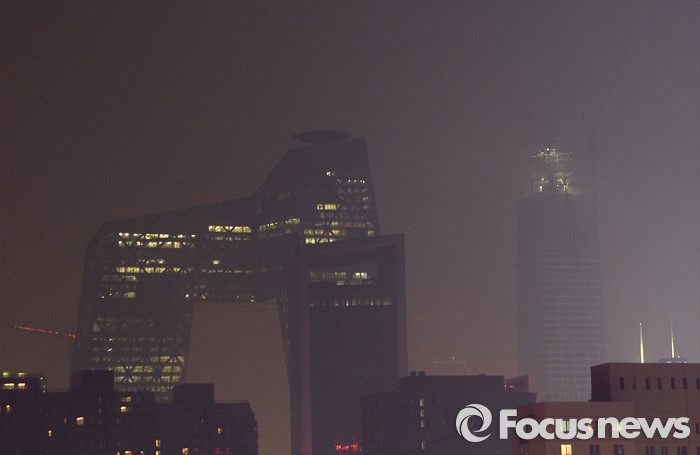 | △ (베이징/중국=신화/포커스뉴스) 중국 수도 베이징에 첫 스모그 적색경보가 내려진 8일 베이징 시내 중심업무지구의 고층 빌딩들이 희뿌연 스모그에 둘러싸여있다. 신화/포커스뉴스 photo@focus.kr |