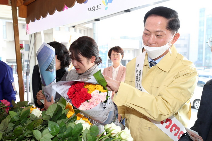 캠페인은 다음달 14일 화이트데이까지 계속될 예정이며, 시청의 경우 오후 6시 30분까지 꽃 판매대를 운영한다.