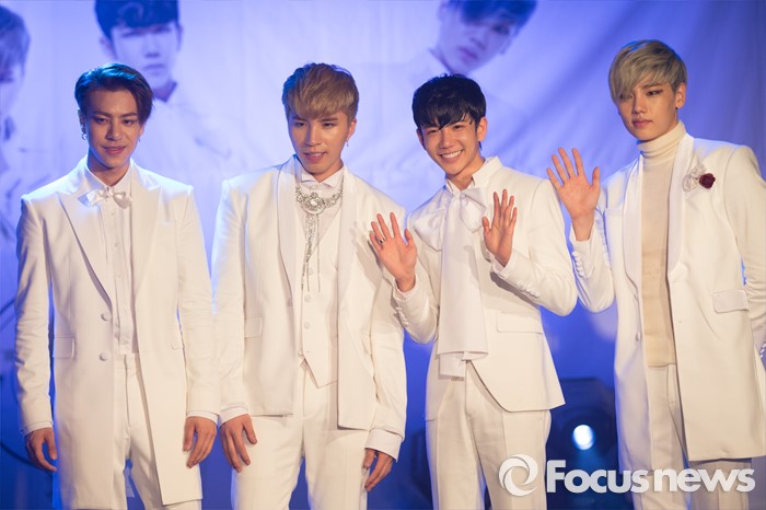 (서울=포커스뉴스) 3일 오후 서울 마포구 어울마당로 롤링홀에서 아이돌 그룹 하이포의 멤버들이 다섯번째 미니앨범 D.O.A(Dead or Alive) 발표 쇼케이스를 마친 후 포토타임을 갖고 있다. 사진 왼쪽부터 알렉스, 김성구, 백명한, 임영준.
