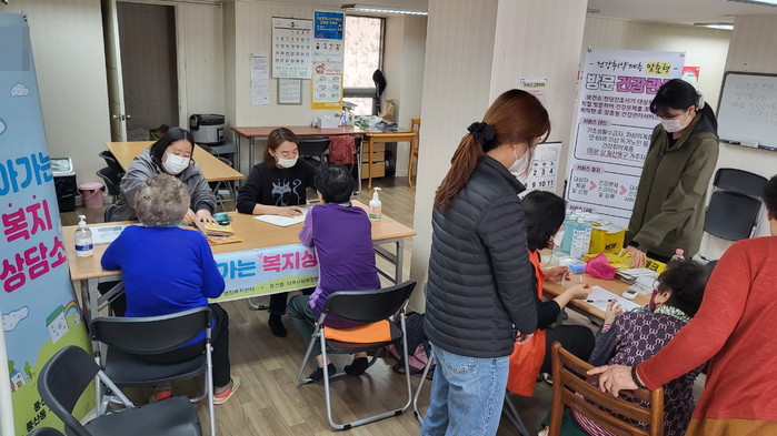 찾아가는 복지상담소는 관내 주민들의 접근이 용이한 장소에서 약 두 시간 동안 진행되며, 방문 주민들과 개인별 복지 상담, 맞춤형 복지서비스 정보를 제공하고, 위기가구 신규 발굴을 위한 홍보도 하고 있다. 또한, 다양한 민·관 업체와 협력해 주민들에게 양질의 정보를 제공하기 위해 노력하고 있다.