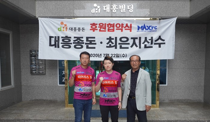 최은지는 “먼저, 제게 후원을 결정해 주신 대흥종돈 이광영회장님, 이혁화 대표님께 감사드립니다. 메인 후원사가 생기니 진짜 프로 선수가 된 것 같습니다. 더 열심히 훈련해 세계적인 격투기 선수가 되겠습니다. 감사합니다!”라 며 소감을 전했다.