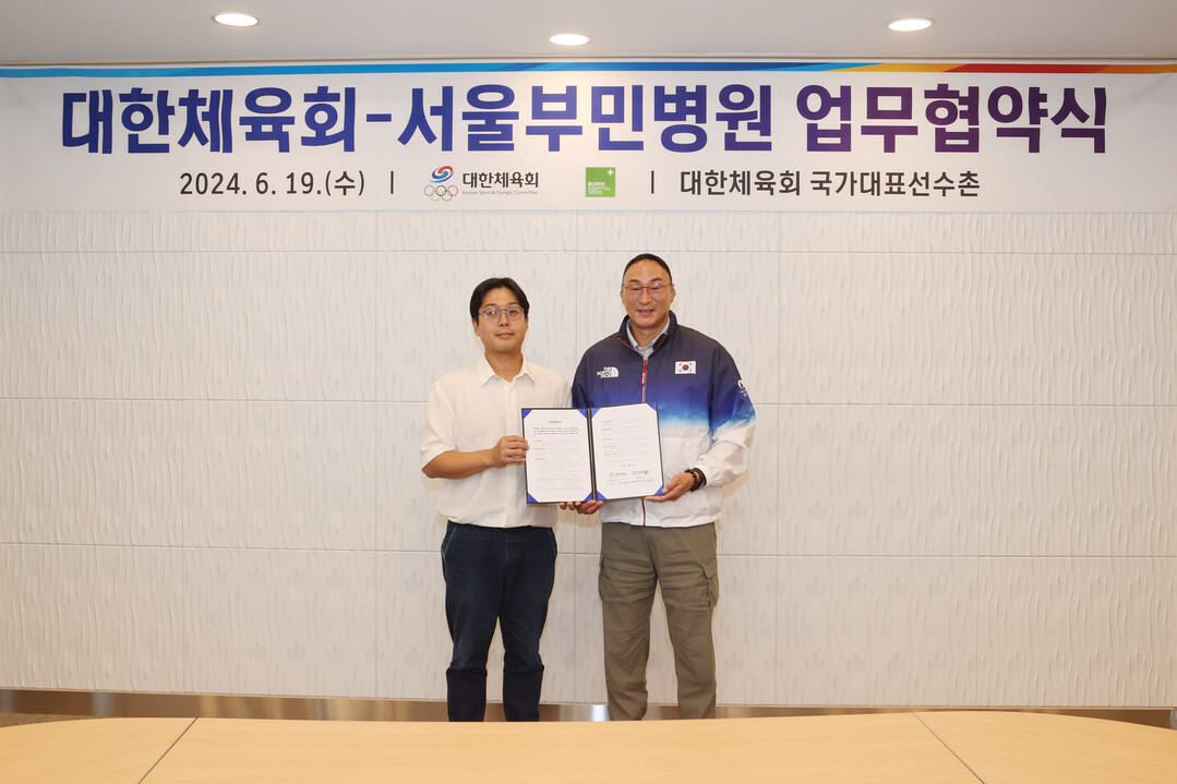 [부자동네타임즈 = 김인수 기자] 대한체육회(회장 이기흥)는 6월 19일(수) 서울부민병원(병원장 하용찬)과 대한체육회 소속의 국가대표 선수 및 지도자와 임직원들의 신속한 의료 서비스 및 치료 지원을 위한 의료협약을 체결했다.