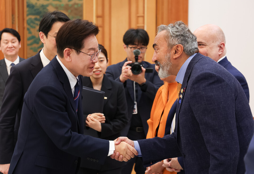 아미 베라 의원과 악수하는 이재명 대통령