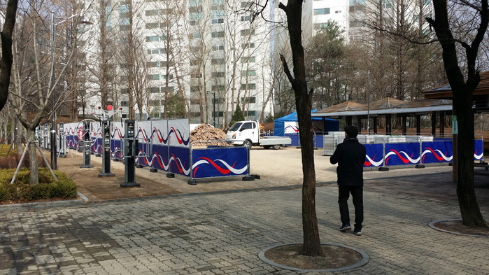 [사진설명] 환경 개선 공사를 위해 차장공원에 안전펜스가 설치.