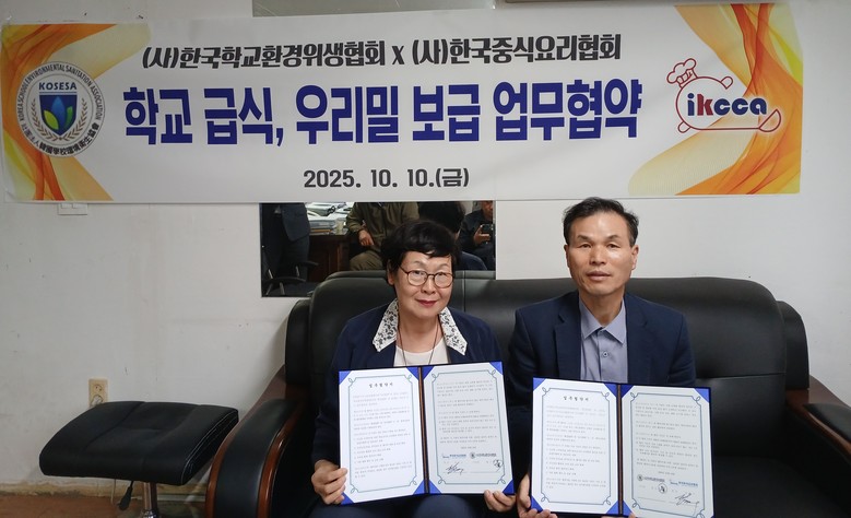 한국중식요리협회–한국학교환경위생협회 업무협약 체결…학교급식·폐교 거점 통한 국산밀 확산 추진