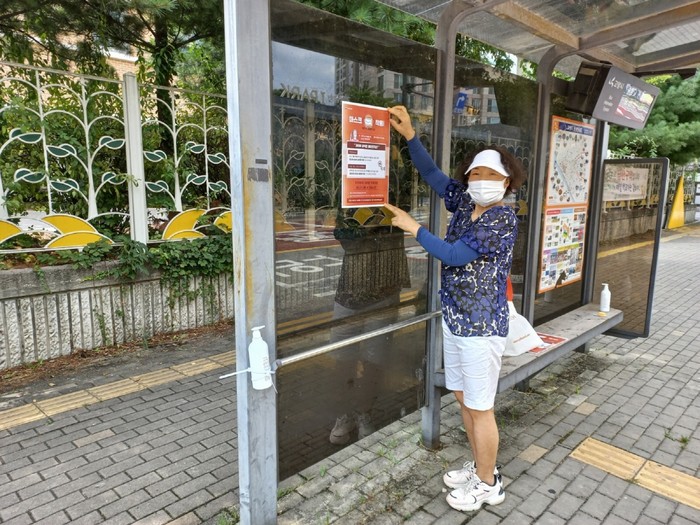 [부자동네타임즈 김인수기자] 고양시 덕양구 원신동(동장 이종찬)은 지난 20일(금) 원신동 통장협의회(회장 이은선) 및 직원 등 20여 명이 참여한 가운데 관내 버스 쉘터 방역 및 손소독제 교체, 마스크 착용 안내 포스터 부착 등 코로나19 예방을 위한 방역활동을 진행했다.