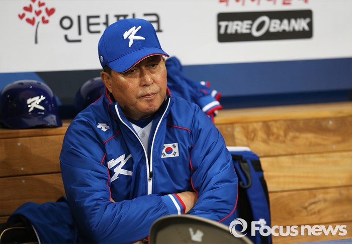 | △ 지난 4일 오후 서울 구로구 고척 스카이돔에서 열리는 '2015 서울 슈퍼시리즈' 쿠바와 대한민국의 경기 전 김인식 감독이 선수들의 훈련을 지켜보고 있다. <사진제공=포커스뉴스> |