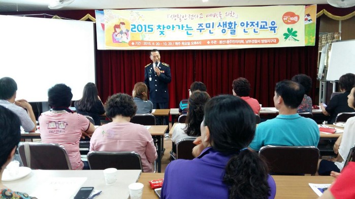 봉선1동 주민자치위원회와 방림지구대가 합동으로 개최한 ‘찾아가는 주민생활 안전교육’은 주민들을 대상으로  10월29일 까지 매주 목요일 오후4시에 10회에 걸쳐 실시되며 안전업무를 담당하는 10여개 기관이 참여해 안전교육을 실시할 예정이다.