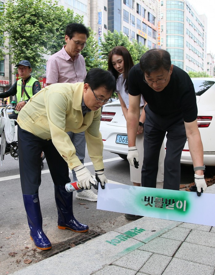 덕양구는 반영구적으로 사용할 수 있는 ‘빗물받이 글자판’ 제작과 유성 분사 페인트 비용 등 40여만 원으로 덕양구 내 빗물받이에 위치 표식을 실시하고 있다.