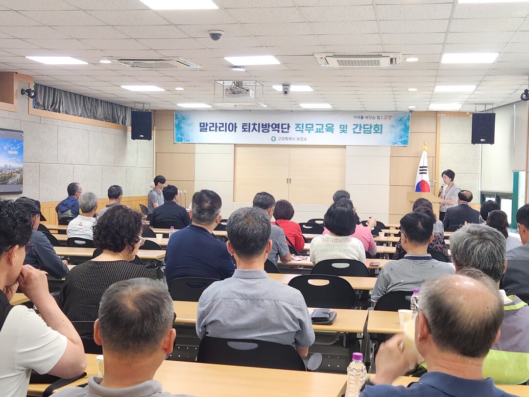 [부자동네타임즈 = 김인수 기자] 고양특례시 보건소는 지난 5일 말라리아 등 매개체 감염병으로부터 안전한 고양시를 만들기 위해 말라리아 퇴치사업단 간담회 및 직무교육을 실시했다고 밝혔다.