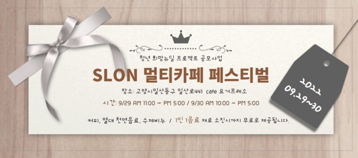 [부자동네타임즈 김인수기자] 고양특례시(시장 이동환) 청년 단체 SLON(슬론)의 “멀티카페 페스티벌”이 요거프레소 정발산점에서 2022년 9월 29일부터 30일까지 열릴 예정이다.