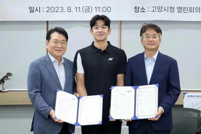 [부자동네타임즈 김인수기자] 고양특례시가 8월 11일 고양시청에서 요넥스코리아와 ‘2023 고양 요넥스 국제 챌린지 배드민턴 대회’의 성공적인 개최를 위해 협약을 체결했다. 고양 요넥스 국제 챌린지 배드민턴 대회는 오는 9월 2일부터 3일까지 고양체육관 등지에서 열릴 예정이다.