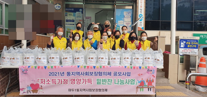 [부자동네타임즈 김인수기자] 고양시 마두1동 지역사회보장협의체(민간위원장 구숙회)가 지난 3일 2021년 동지역사회보장협의체 공모사업인 저소득가정 영양가득 밑반찬 나눔사업을 진행했다.