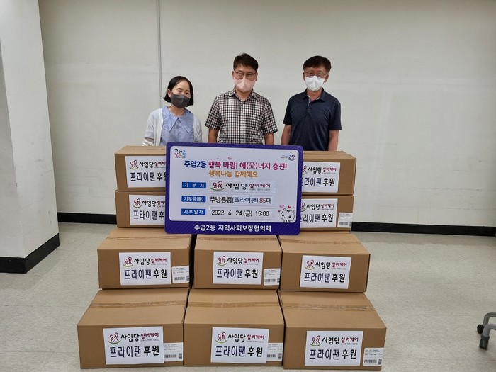 [부자동네타임즈 김인수기자] 일산서구 주엽2동 행정복지센터(동장 박교원)는 6월 24일 사임당실버케어(대표 주은석)에서 저소득 한부모가족 85가구에 전달할 주방용품(310만 원 상당 프라이팬 세트)을 지원받았다고 전했다.