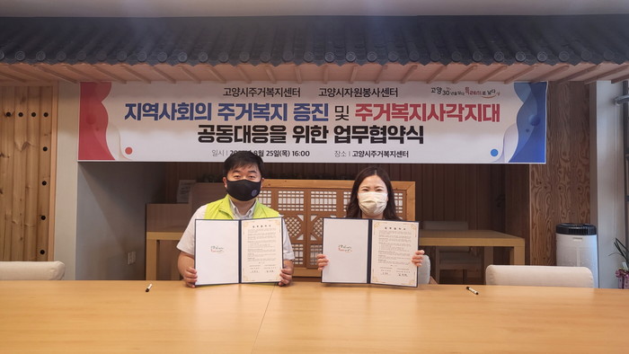 [부자동네타임즈 김인수기자] 고양특례시(시장 이동환) 주거복지센터가 지역사회의 주거복지 증진 및 주거복지사각지대 공동대응을 위해 고양시자원봉사센터와 업무협약을 체결했다.
