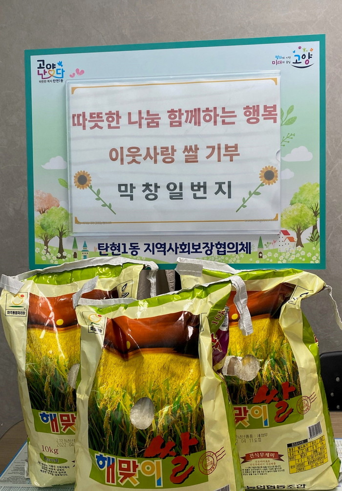 [부자동네타임즈 김인수기자] 고양시 일산서구 탄현1동 행정복지센터(동장 박상원)는 지난 20일 ‘막창일번지’(대표 김성연)로부터 어려운 이웃을 위한 나눔으로 쌀 10kg 3포를 전달받았다고 밝혔다.