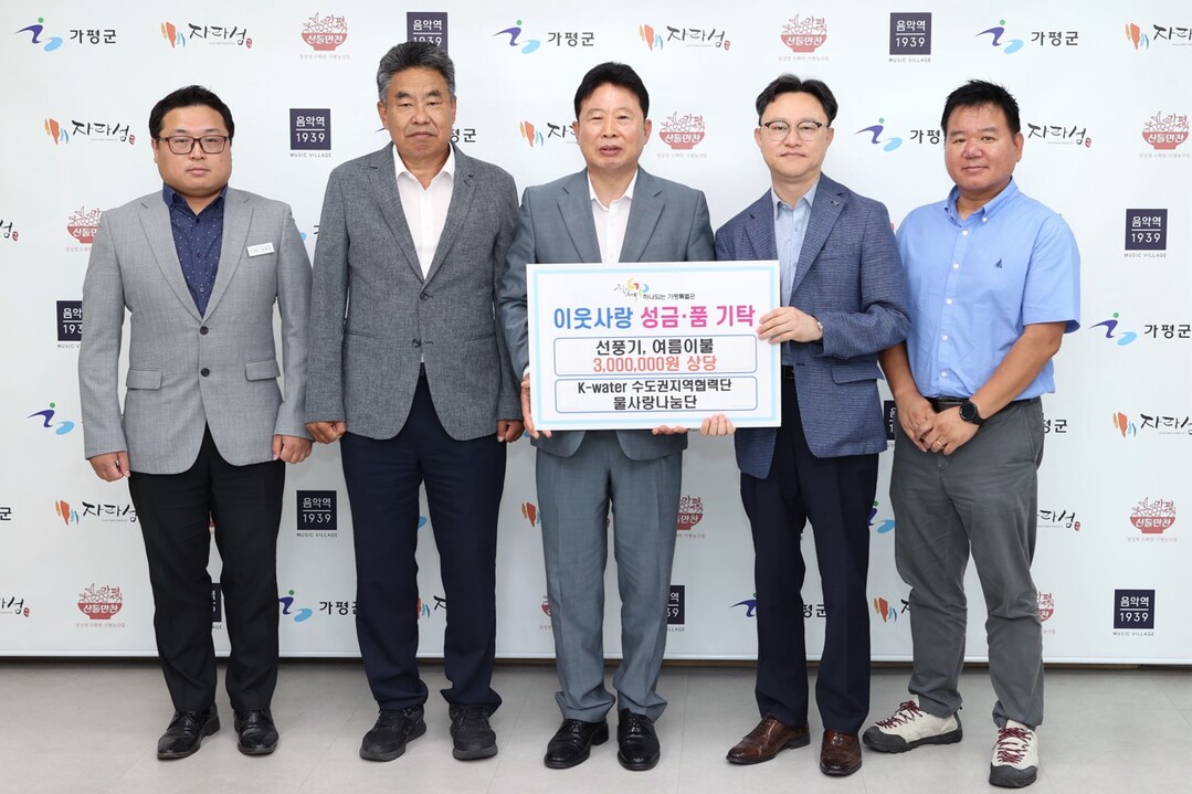 [부자동네타임즈 = 김인수 기자] 가평군은 k-water 수도권지역협력단 물사랑나눔단(단장 김능근)에서 지난 18일 어려운 이웃을 위해 300만원 상당의 선풍기와 여름이불을 군에 기탁하는 전달식을 가졌다고 밝혔다.