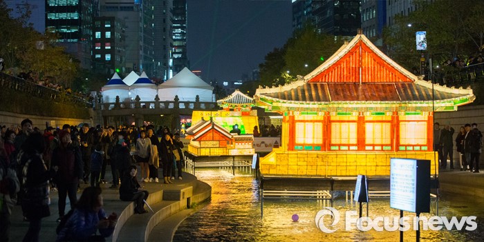 - (서울=포커스뉴스) 6일 오후 서울 청계천에서 열린 '2015 서울빛초롱축제'에서 다양한 모양의 등불들이 환하게 빛나고 있다. 청계광장에서 수표교를 잇는 청계천 물길 1.2km를 600여 개의 다양한 등불이 밝히며 오는 22일 오후 5시부터 오후 11시까지 열린다.